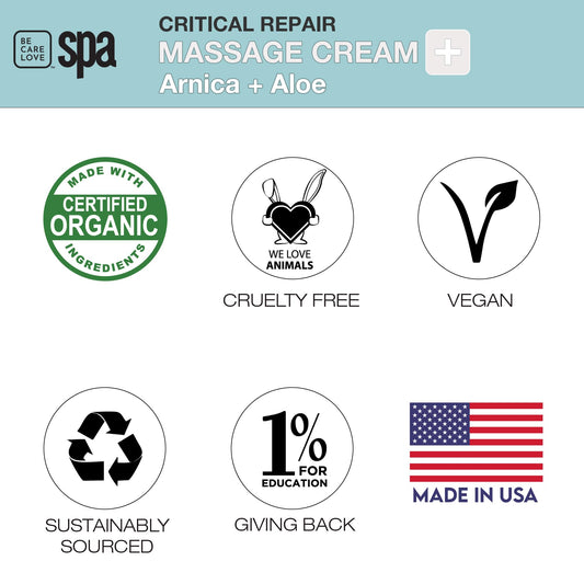 BCL Spa Critical Repair Massage Cream with Arnica, Aloe Vera, Kelp, Argan Oil, Shea Butter | Soothing Relief and deep Skin Nourishment Body Moisturizer, Vegan, Organic | Made in USA | 16 fl oz