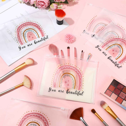 Wesiti 50 Pcs Rainbow Cosmetic Bag Inspirational Gift Motivational Quotes Christian Makeup Bag Bulk Waterproof Zipper Pouch for Women Girl Teacher Christmas Gift(You Are Beautiful)