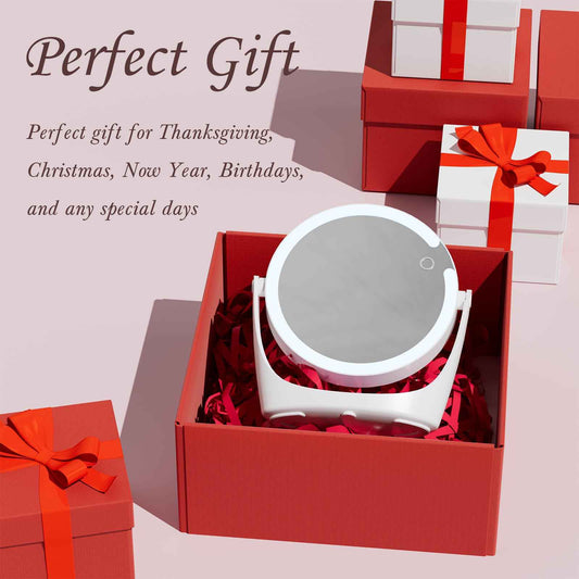 BVKGH Makeup Vanity Mirror with Lights, 10x/1x Magnifying 3 Colors Light, 360°Rotation HD Mirror, LEDs 1500 mAh Rechargeable Double Sided Mirror, Gift for Women