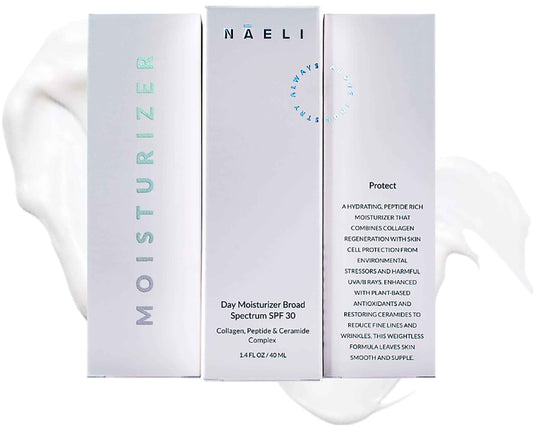 NAELI Face Moisturizer with SPF 30, Anti Aging Collagen & Peptide Cream, Reduces Wrinkles - Lightweight Skin Hydration with Hyaluronic Acid, Paraben Free & Non-Comedogenic Sunscreen, 1.4 oz