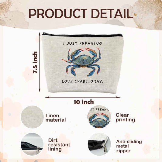 ignytiger Beach Crab Makeup Bag, Crab Lovers Gift for Women, Coastal Beach Lover Cosmetic Makeup Bag, Ocean Crabs Pouch Purse