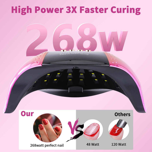 268 W UV LED Nail Lamp for Gel Polish with 4 Timer Settings and Professional Manicure Nail Dryer with Automatic Sensor
