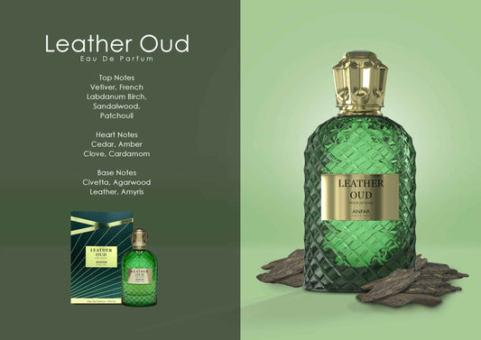 Anfar Leather Oud Pour Homme Eau De Parfum,3.4OZ FOR MEN,100 ml, Vetiver, Labdanum, Birch, Sandalwood, Patchouli.