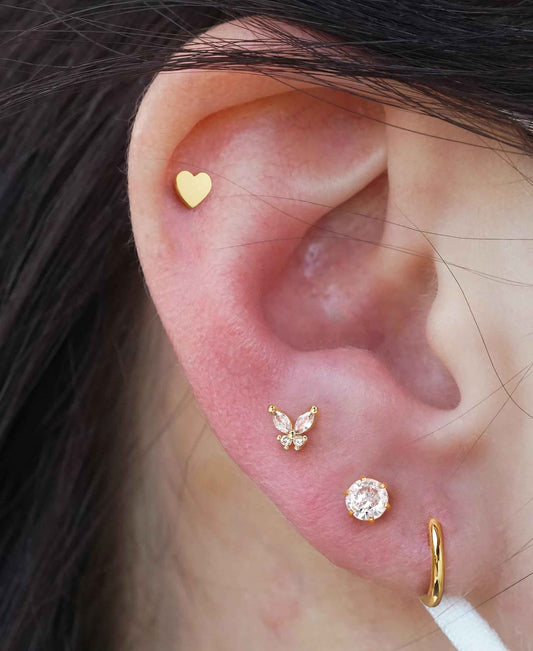 KRFY Ear Piercing Kit Sets, Disposable Stainless Steel Ear Piercing Gun with Preloaded Stud Earrings for Women, Self Pierce Studs Kit Tool, Flat Back Hoop Earrings Cartilage Jewelry Three Gold Plated