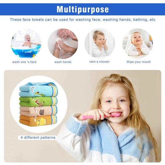 Gukasxi Children's Facial Towel, 4 Pack Kids Washcloth Towels, 100% Cotton Kids Face Towels Hand Towels for Bathroom, Multicolor Fingertip Towels Children Wash Cloths for Hand, Face, Shower