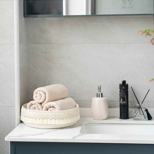 Mkono Makeup Perfume Holder Organizer Macrame Decorative Woven Rope Basket Boho Decor Cosmetics Desk Storage Baskets for Dresser Skin Care Lotions Essential Oils Dorm Room Essentials