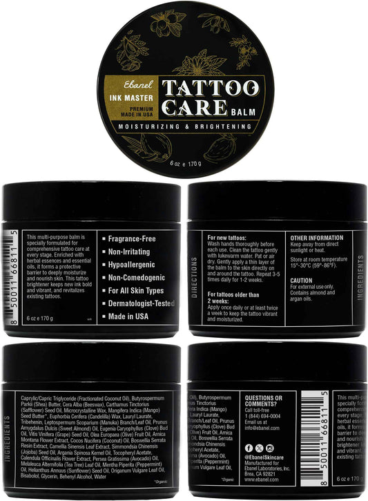 Ebanel Tattoo Balm 6oz, Premium Tattoo Aftercare Cream Brightener Ink Color Enhancing Butter Moisturizer with Herbal Essences and Essential Oils, All-Stage Tattoos Ointment After Care Kit Supplies