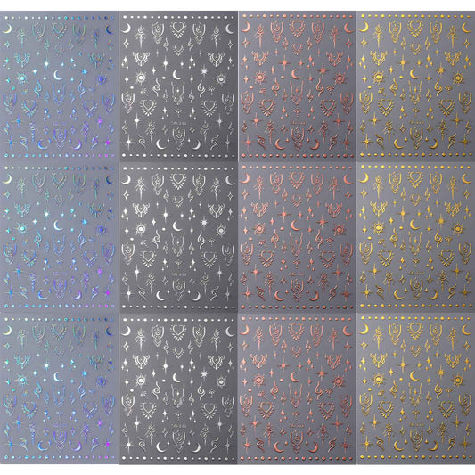 Namrec 12 Sheets Star Nail Stickers for Nail Art Gold Moon Star Nail Art Stickers Decals 3D Self Adhesive Aurora Nail Decals Silver Star Nail Art Design Decoration Accessories for Women, Style 3