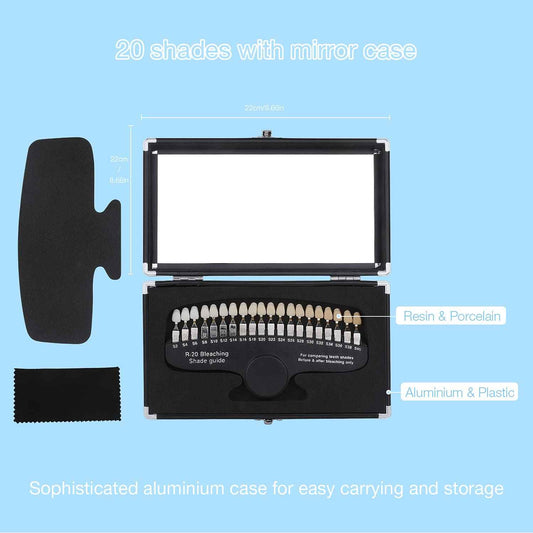faruijie Teeth Whitening Shade Guide - Tooth Bleaching Shade Chart 3D R-20 Professional Dental Color Comparing Tracking with Case & Mirror 20 Colors