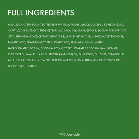 Dr.Ceuracle Tea Tree Purifine Cream - Korean Skincare Calming Moisturizer with Pantenol, Ceramide, Soothes for Sensitive Skin (50g / 1.76 oz.)