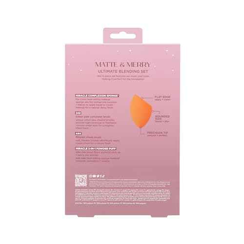 Real Techniques Matte & Merry Ultimate Blending 4 Piece Holiday Gift Set, Foundation Makeup Sponge, Dual-Sided Powder Puff, & 2 Makeup Brushes, Kitten Paw Brush, Stocking Stuffer, Limited Edition