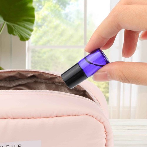 Furnido Pack of 50,2ml (5/8 Dram) Glass Roll on Bottle Mixed Color Sample Test Roller Essential Oil Vials Stainless Steel Roller Balls With Black Cap For Aromatherapy,Perfume Oils-Pipette included