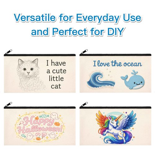 Phicorn Small Canvas Zipper Pouch – 6-Pack (8" x 4.2") Blank Natural Cotton Bags with White Lining for DIY Crafts, Makeup, Travel & Everyday Organizing
