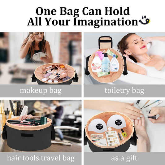 TAPMEI Barrel Drawstring Makeup Bag Large Travel Makeup Bag,Portable Large Capacity Cosmetic Bag Toiletry Organizer for Travel Accessories Make Up Essentials and Hair Product,Gifts (Black)