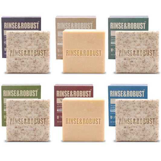 Rinse & Robust Mens Natural Bar Soap 6Pcs Handmade Cleansing Moisturizing&Exfoliating Scrub Soap Set Gifts for Men Body&Hand All Skin Type 6 Different Scents 5.3 oz of 6 Bars