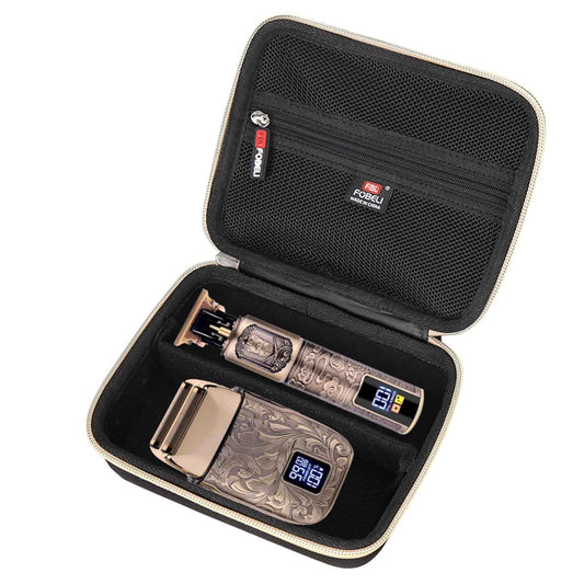 FBLFOBELI EVA Hard Storage Case for Ufree/for Brightup FK-8788T/ for Wahl 9916-817V Electric Razor Foil Shavers for Men, Hair Beard Trimmer Grooming Shaving Kit Storage Holder (Black+Gold Zipper)