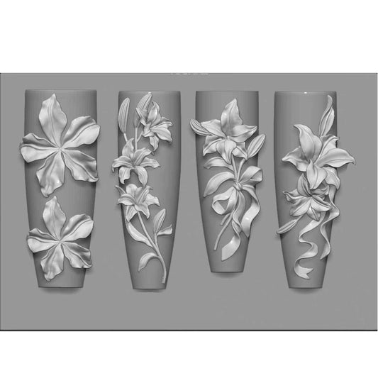 LIFOOST 3D Flowers Nail Mold Silicone Lily Flower Charms Embellishment Moulds Nail Art Floral Carving Template for Manicure Design Tool