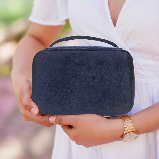 KOPY Velvet Makeup Bag for Women, Large and Classy Makeup Organizer, Make Up Travel Toiletry Bag Portable With Handle (Navy)