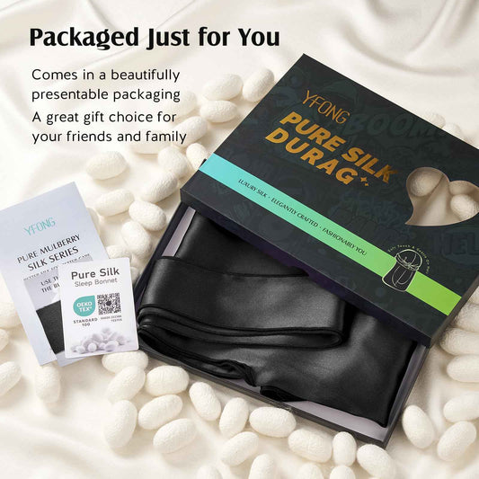 YFONG 100% Mulberry Silk Durag for Men & Women, 22 Momme Silky Durag for Hair Care, Soft and Breathable Do rag for Comfortable Wear, Perfect for Fashion Styling, 1Pc, Black