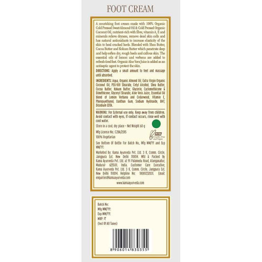 Kama Ayurveda Foot Cream with Pure Essential Oils of Lemon, Verbena and Cedar Wood, 60g