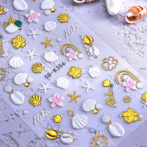 2 Sheets Summer Ocean Nail Art Stickers Decals 5D Embossed Self-Adhesive Seashell Starfish Nail Stickers Beach Sea Creatures Nail Decals for Acrylic Nails Women DIY Manicure Sliders Supplies