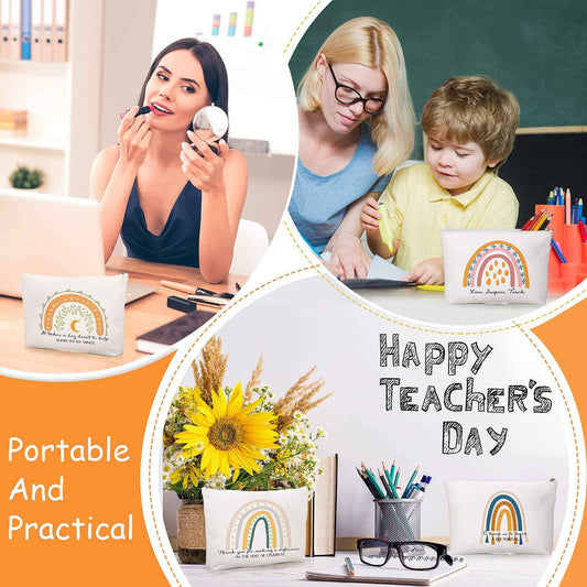 Fumete 40 Pcs Teacher Gift Inspirational Rainbow Makeup Bag Rainbow Silicone Keychains Bulk Zipper Canvas Teacher Pencil Pouch for Employee Appreciation Thank You Gifts Thanksgiving Christmas