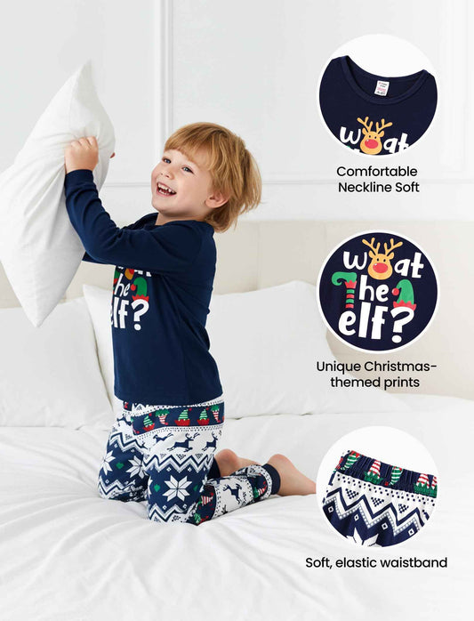 PATPAT Family Christmas Pajamas Matching Sets Funny “What the Elf” PJs Blue Holiday Sleepwear, Christmas Pajamas for Family with Baby, Kids, Adults, Couples including Socks