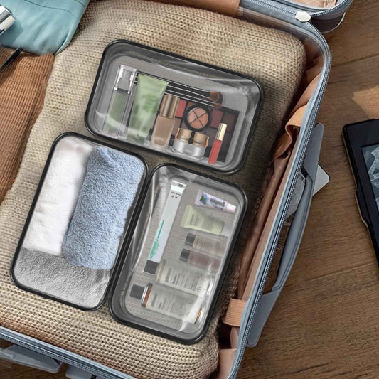 GONITYOU 16 Pieces Clear Makeup Bags Bulk, TSA Approved Toiletry Bags Travel Pouch, Waterproof PVC Plastic Small Clear Cosmetic Bags with Zipper for Organizing (Black Border)