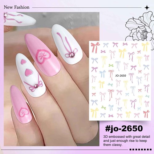 6 Sheets Bow Nail Sticker 3D Embossed Self-Adhesive Color Bow Art Nails Decals 5D Design Stickers Supplies for Women Girls Manicure Decoration 807-8