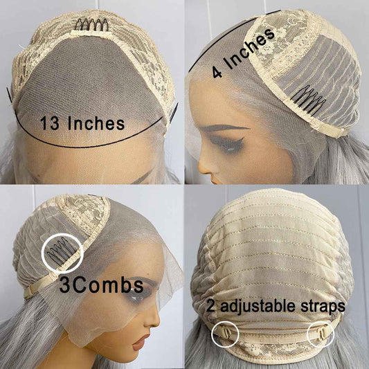 Silver Grey Long Curly Synthetic Lace Front Wigs for Women Free Part Pre Plucked Natural Hairline Lace Front Synthetic Cosplay Wigs Glueless Daily Wear Costume Wig 24 Inches
