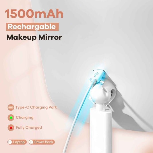 DYETUNY Makeup Mirror with Lights, Rechargeable Vanity Mirror with 3 Color Light, Adjustable Brightness, 360° Degree Rotation, Makeup Mirror for Beginners, Gifts for Women (White)