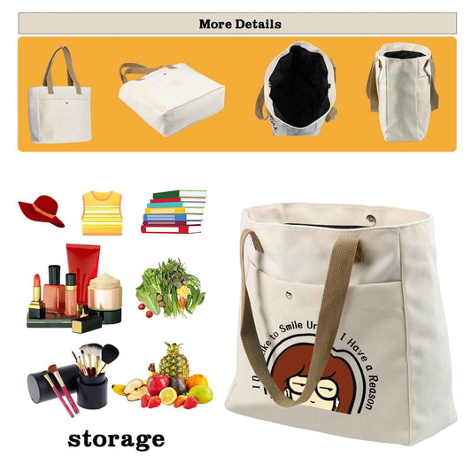 CMNIM Cartoon Merchandise Gift I Don't Like To Smile Unless I Have a Reason Larger Tote Bag 90s TV Show Merch for Fans