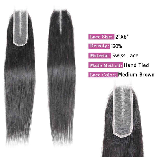 Brazilian Straight 2x6 Lace Closure 100% Unprocessed Human Virgin Hair Remy Pre-Plucked Hairline Natural Color Closure With Baby Hair (2x6 straight closure, 18inch)