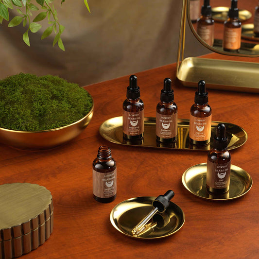 LOVERY (5 Pack Beard Oil for Men, Natural Mens Beard Oil Kit Variety Set - Sandalwood, Vanilla, Cedarwood, Pine, Unscented, W Argan & Jojoba Oil, Mens Beard Softener Grooming Gifts for Him