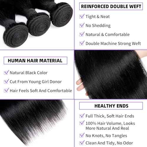12A Brazilian Straight Bundles Human Hair 20 22 24 Inch 100% Unprocessed Virgin Hair Straight Weave Bundles Human Hair 3 Bundles (300g Natural Black)