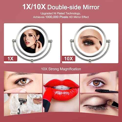 7.5¡± Lighted Makeup Mirror with 3 Color LED Dimmable Lighting, 1X/10X Magnifying Mirror with Light, Free Swivel Vanity Mirror, Senior Pearl Nickel Travel Mirror, Dual Power Supply