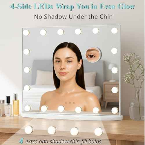 LUXFURNI Vanity Mirror with Lights, 23.6" x 20.5" Hollywood Mirror, Light Up Makeup Mirror with 18 LED Bulbs for Bedroom, 3 Color Lighting Modes, Tabletop & Wall Mount, USB Charging Port
