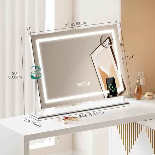 YITAHOME Vanity Mirror with Lights 24.6"x20" LED Lighted Makeup Mirror, Large Makeup Mirror with Lights, Touch Screen with 3-Color Lighting, Led Mirror Makeup, Dimmable, for Vanity Desk Tabletop