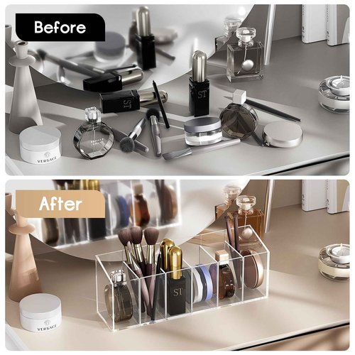 Acina 2PCS Clear Makeup Brush Holder Organizer Acrylic 3-Slots Cosmetic Brushes Storage Organizer for Vanity Countertop