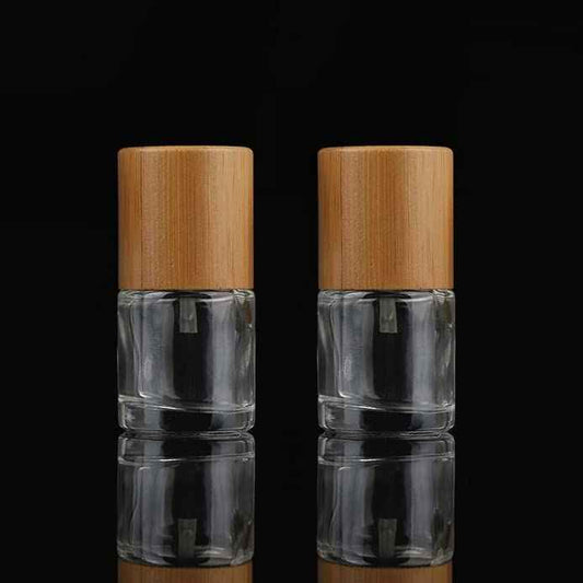 lasenersm 2 Pieces 10ml Empty Nail Polish Bottles with Bamboo Cap and Brush Refillable Nail Polish Glass Bottles Cylindrical Glass Bottles Vials Containers for DIY Nail Art