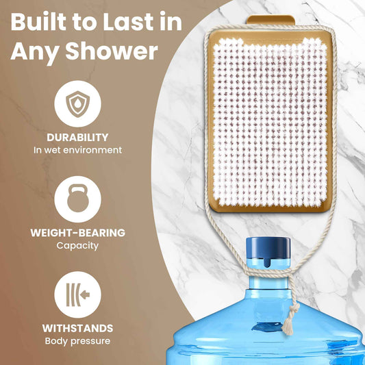 ShowerTree Wall-Mounted Back & Body Shower Scrubber | Replaceable Brush with Exfoliating Bristles for Back & Skin Care (Tan)