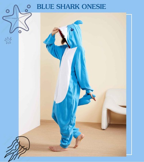 Focupaja Shark Pajamas Adult Animal Cosplay Costume One Piece Cartoon Homewear Sleepwear Onesie for Women Men Dark Blue XL