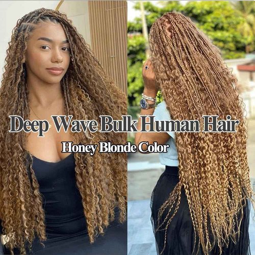 Deep Wave Bulk Human Hair For Braiding 16 Inch 100g/2Bundles No Weft Human Braiding Hair Extensions For Braids Honey Blonde Deep Wave Curly Bulk Human Hair 12A Wet And Wavy Human Hair Braiding Hair