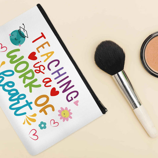 YOMOVER Teacher Appreciation Gifts Makeup Bag - 4 Pcs Best New Teacher Gifts for Women Small Cosmetic Bags Canvas Travel Toiletry Bag with Zipper for Teacher's Day Graduation Back to School