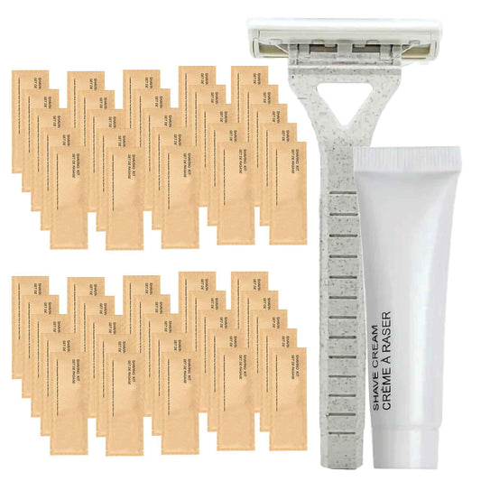 World Amenities Kraft Paper Shave Kit - Bulk Homeless Care Package - Dual Blade Safety Razor and Shave Cream Set (50 Pack)