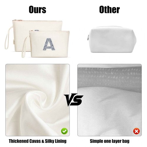 A-Z BAG 2pcs Personalised Makeup Bag Set, Canvas Cosmetic Bag with Rhinestone Initial, Birthday Gifts for Women (A, Beige)