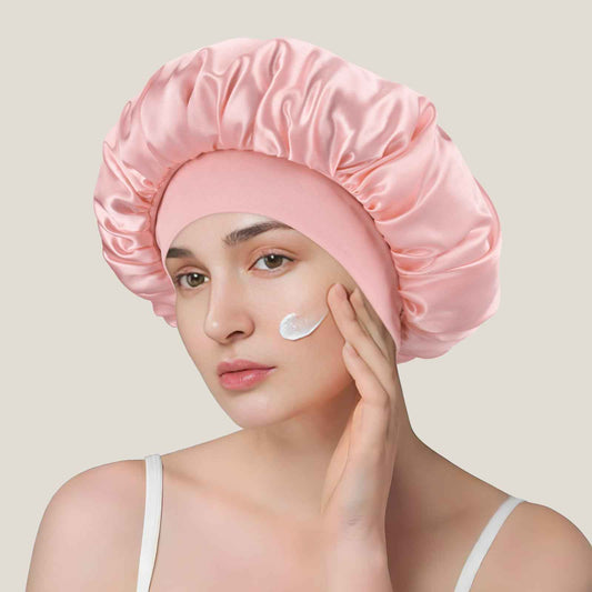 Silk Satin Bonnet for Sleeping Women,Double Layer Silk Satin Sleep Cap with Elastic Band for Natural Curly Hair(1PCS,Pink)