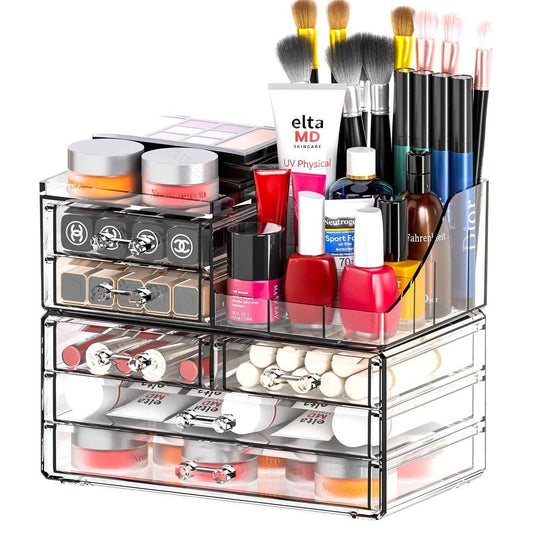 SUOXING Clear Acrylic Makeup Organizer for Vanity,Bathroom,Dresser,6 Drawer Cute Make up Organizers for Counter,Plastic Countertop Makeup Storage for Beauty,Jewelry,Brush,Cosmetic,Skin Care Organizer