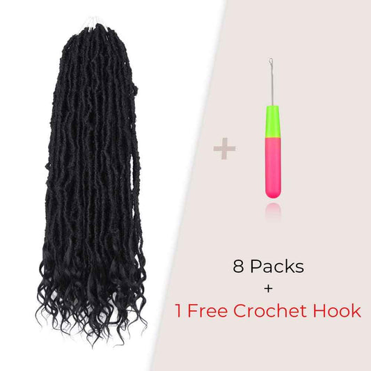 Niseyo Wild Locs 24 Inch Distressed New Faux Locs with Curly Ends 8 Packs Long Soft Pre-looped Goddess Crochet Hair (2#, Off Black)