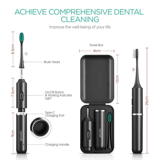 VOYOR-Health Travel Electric Toothbrush, Rechargeable Toothbrushes for Adults, Portable Sonic Toothbrush with 5 Modes, Three-Section Detachable Design with Travel Case ET410 (Black)